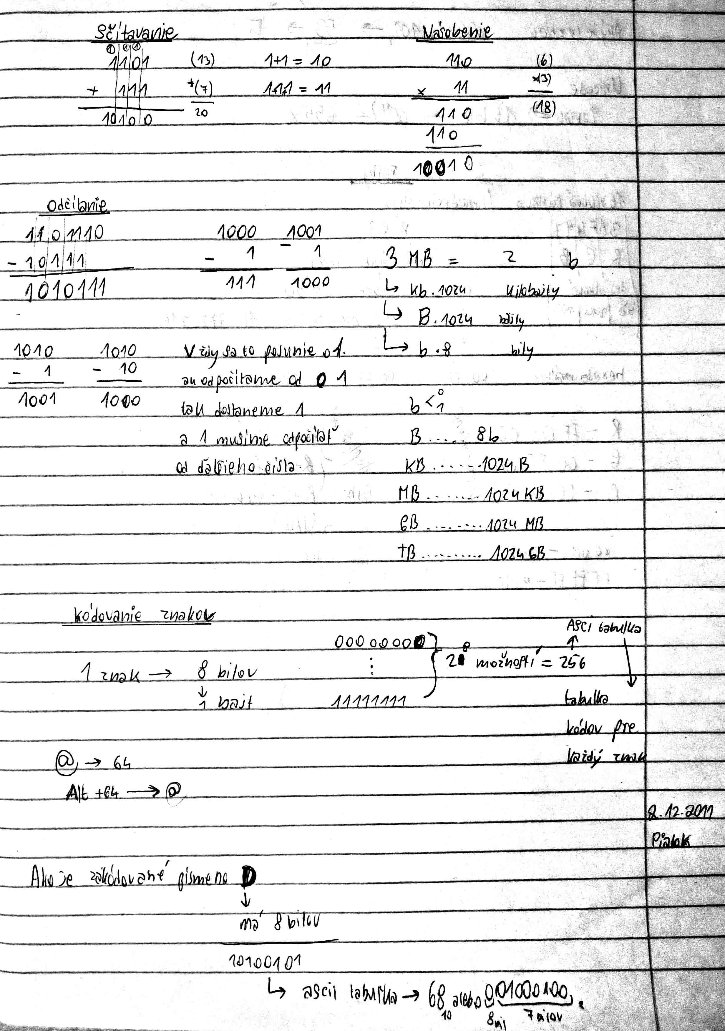 Číselné sústavy - operácie s nimi, Kódovanie