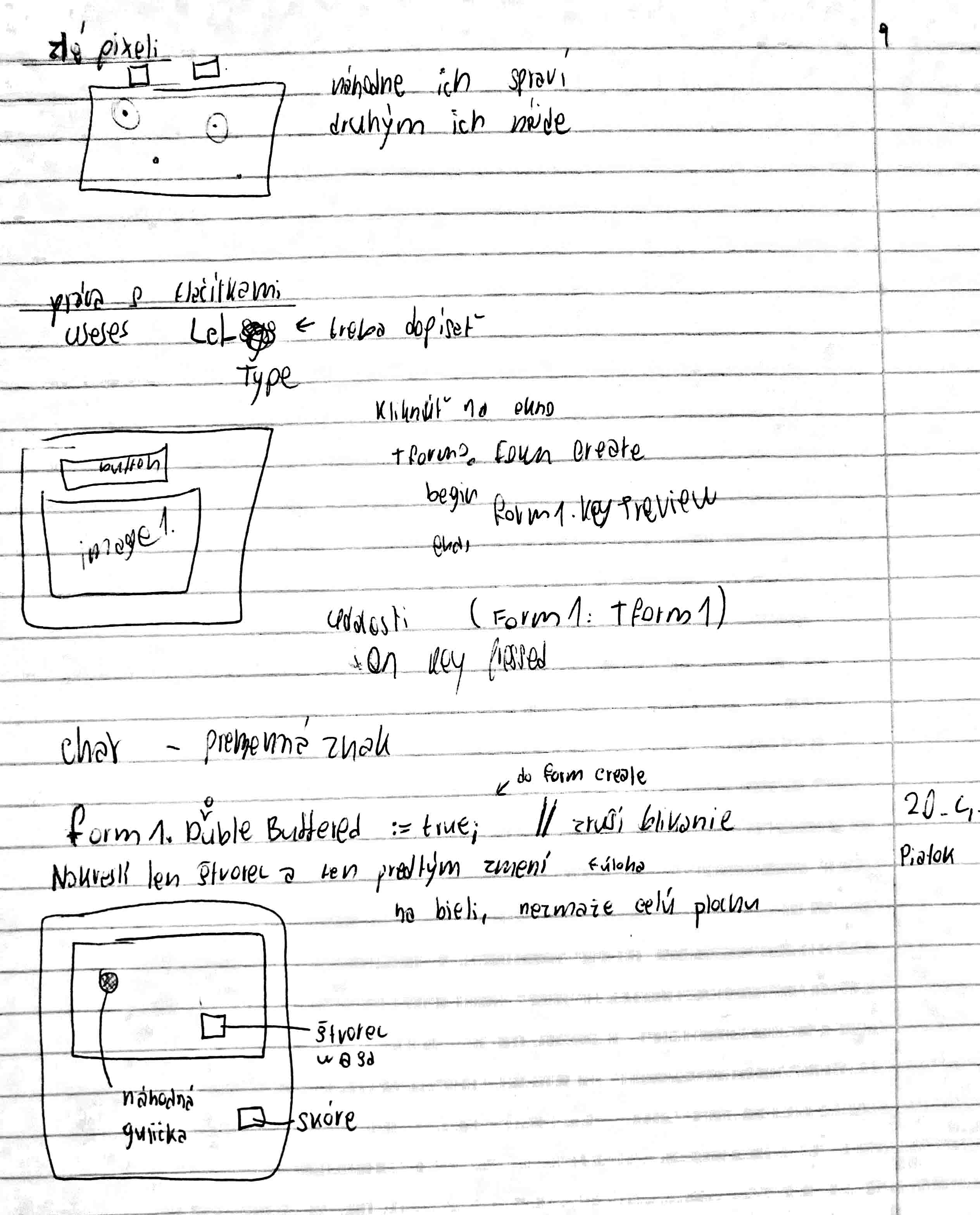 doublebuffer, štvorec a gulička
